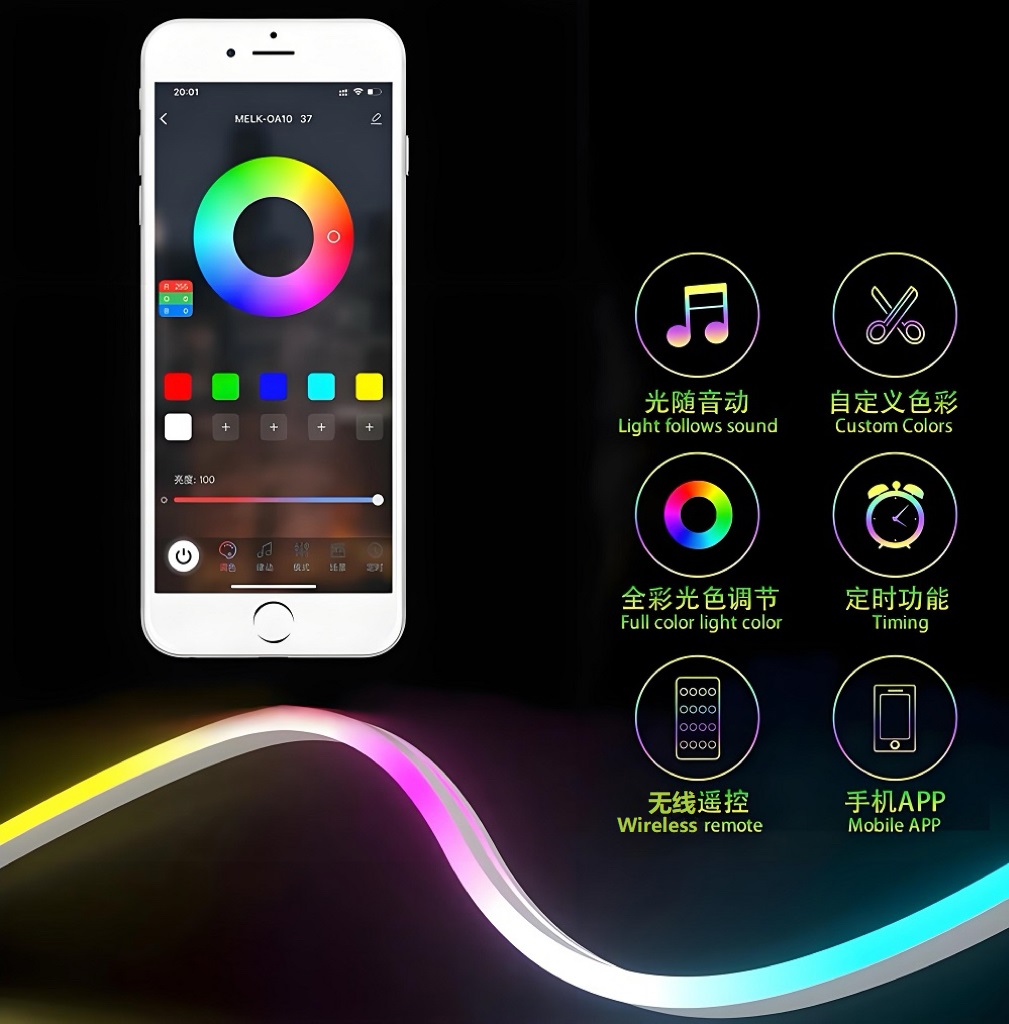 RGBIC dream color Neon Flex series adopt silicone injection-molding technology, high quality LED strip with low